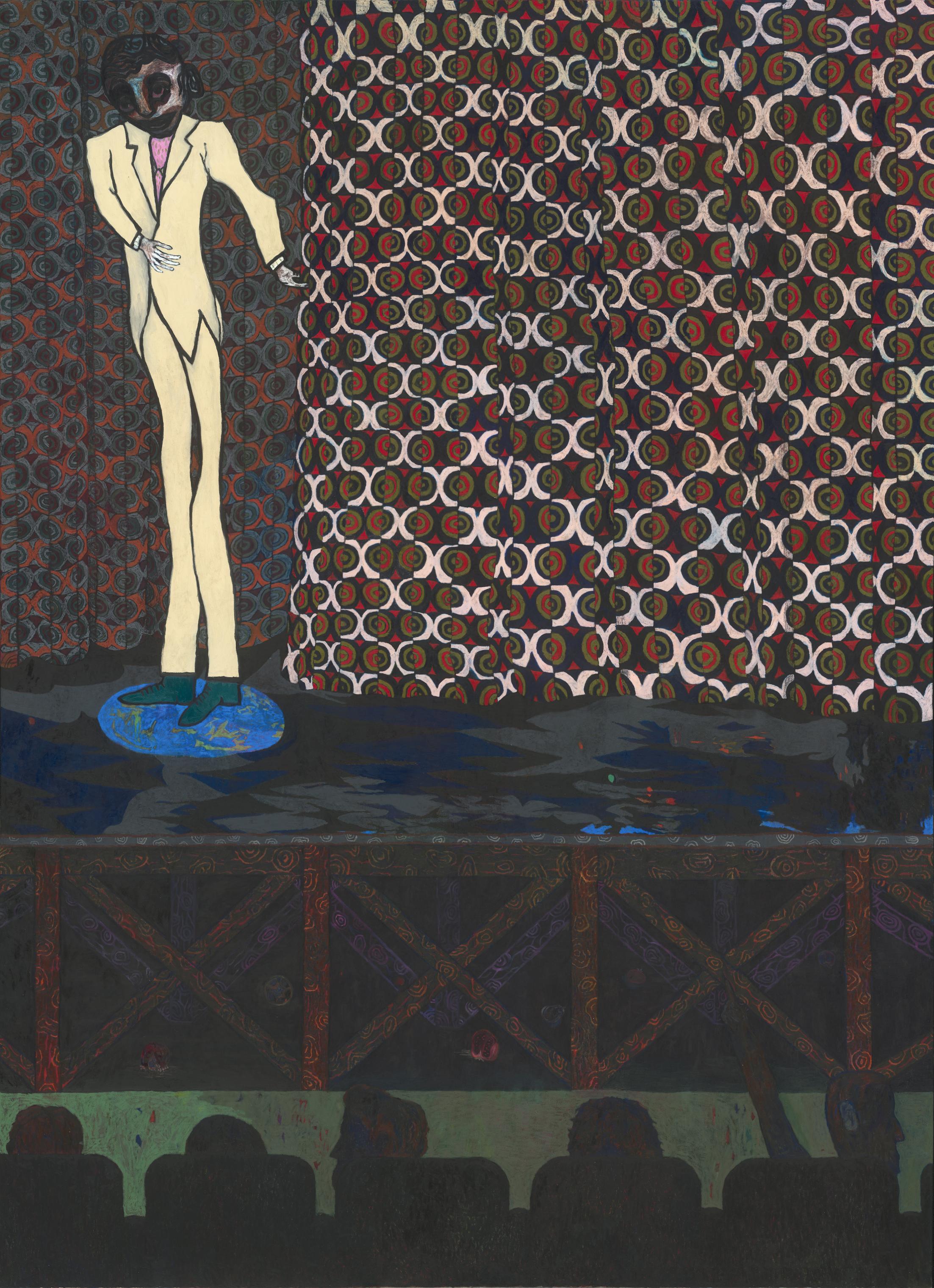 Public Square, 2025, acrylics, oil and oil pastel on canvas, 250 x 188 cm